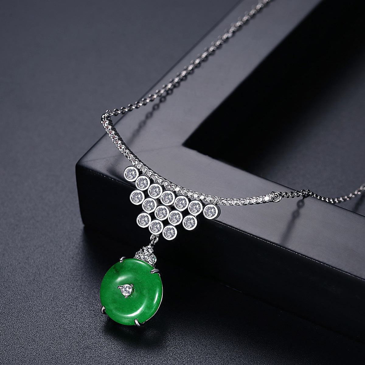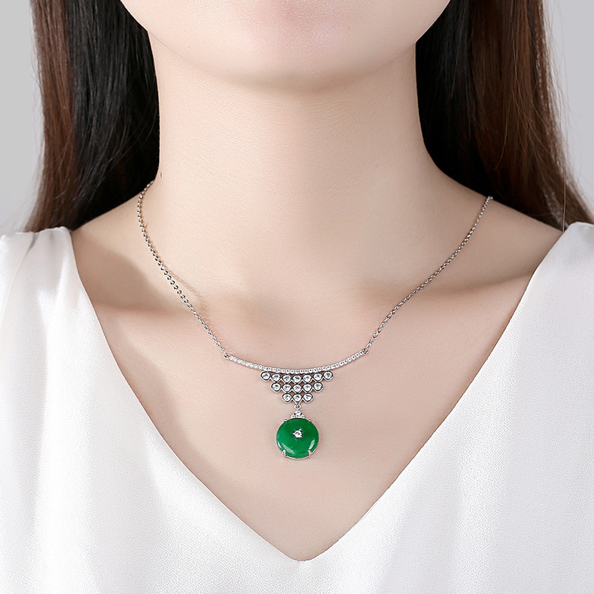Style Number: AAA2453Size: Pendent: 15mm x 53mm x 40mm Chain: 45cmStone: Cubic ZirconiaWeight: 7.85gPlating: White Gold Plated