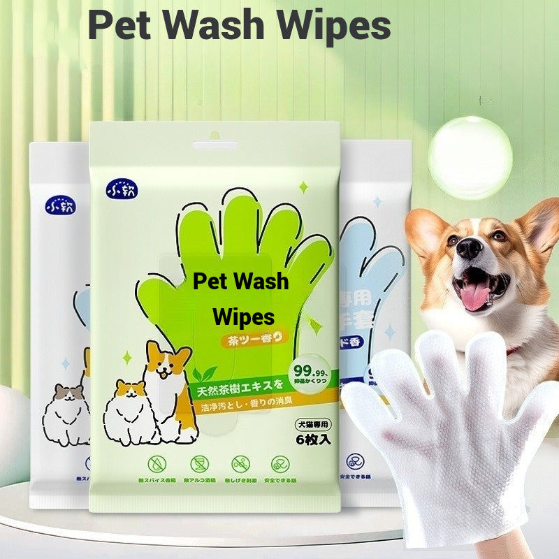 Pet disposable cleaning gloves wipes 6 pcs 1 pkt